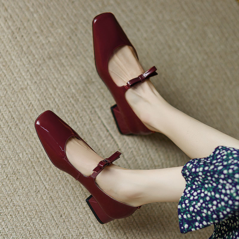 CHIKO Inca Square Toe Block Heels Mary Jane Shoes feature patent-leather upper, leather lining, rubber sole. Heel height is approx. 1″ (3 cm)
