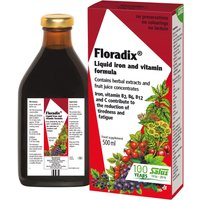 Floradix Liquid Iron and Vitamin Formula 500ml. Floradix Liquid Iron benefits:. Floradix contains selected herbs and several fruit juice concentrates for a pleasant taste. These herbal extracts and fruit juice concentrates contribute to the reduction of tiredness and fatigue. Floradix liquid iron is particularly beneficial for woman, including expectant and lactating mothers, children, adolescents, the elderly, convalescents, vegetarians and those with an active lifestyle. As these nutrients are already dissolved, they are absorbed more quickly by the digestive system compared to tablets. Floradix is easy to take and helps safeguard the balance of iron and vitamins B1, B2, B6, B12 and C.. Floradix Liquid Iron ingredients:. Organic iron (II) from ferrous gluconate which is a particularly absorbable form. Iron contributes to normal red blood cell and hemoglobin formation.. Vitamins B1, B2, B6, B12 and C contribute to the reduction of tiredness and fatigue and to normal energy-yielding metabolism.. Vitamin C increases iron absorption.. Floradix contains no alcohol, preservatives, colourings or artificial flavourings. It is lactose free and suitable for vegetarians.. You may check out our customers Floradix Liquid Iron reviews below.