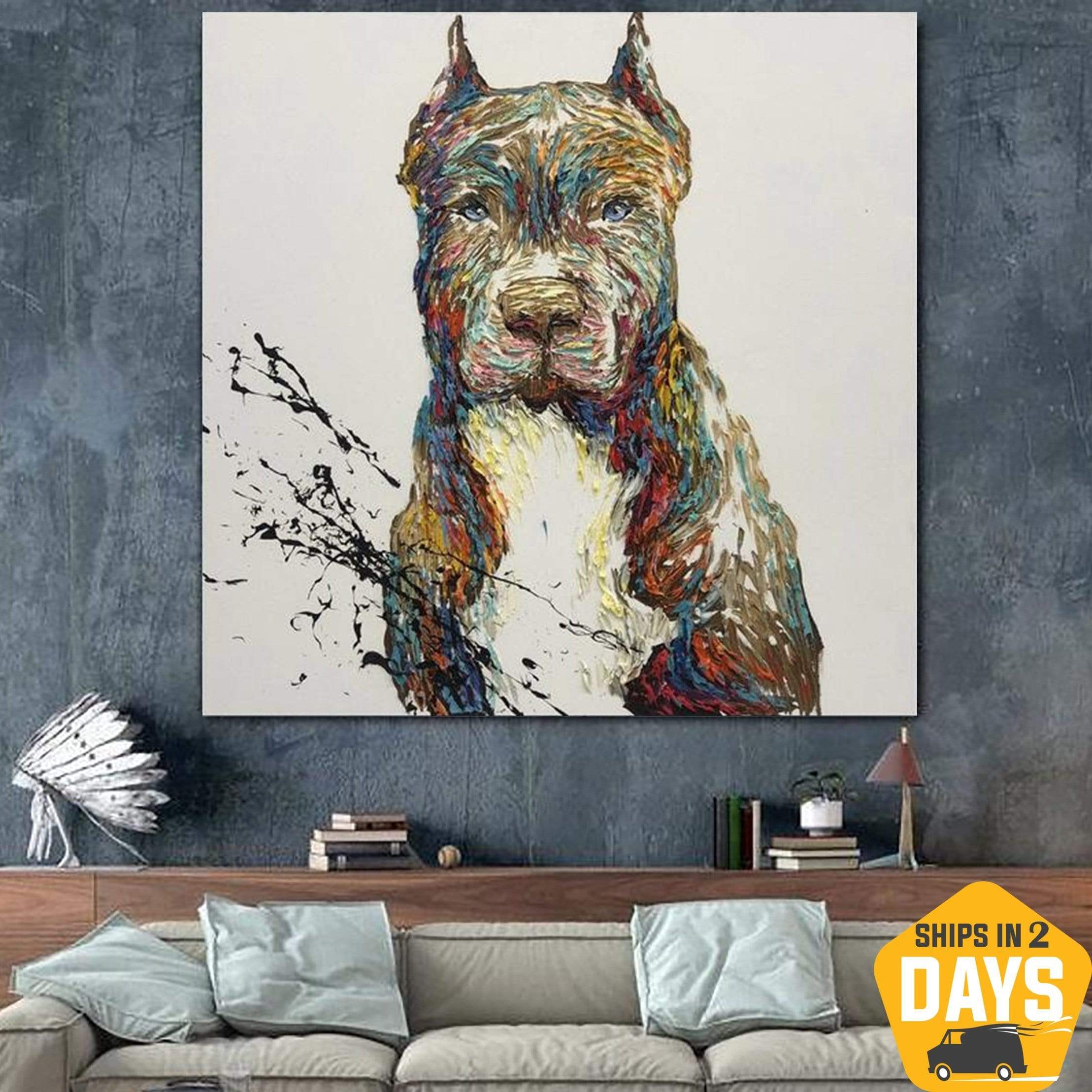 Original Abstract Pit Bull Fine Art Dog Paintings On Canvas Oil Pet Painting Modern Wall Art Fine Art Decor | FIDELITY 24"x24"